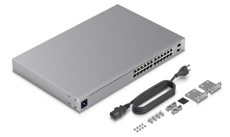 Switch Pro 24 de Ubiquiti ofrece alto rendimiento con 24 puertos GbE y 2 SFP+ 10G, ideal para redes avanzadas con enrutamiento de capa 3 y administración remota.