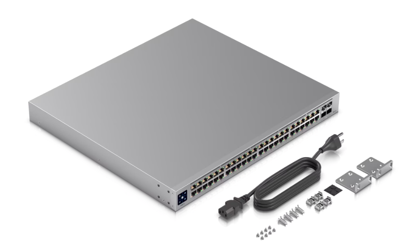 USW Pro 48 es un switch L3 de UniFi con 48 puertos Gigabit, 4 SFP+ de 10 Gbps, pantalla táctil y soporte para energía redundante, ideal para redes empresariales de alto rendimiento.